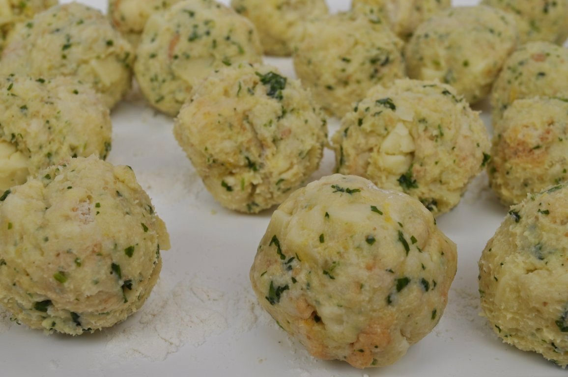 Formate 25 palline stando attenti a lasciare il formaggio piuttosto verso l’interno della pallina, vi verranno così canederli più omogenei e più belli alla vista.